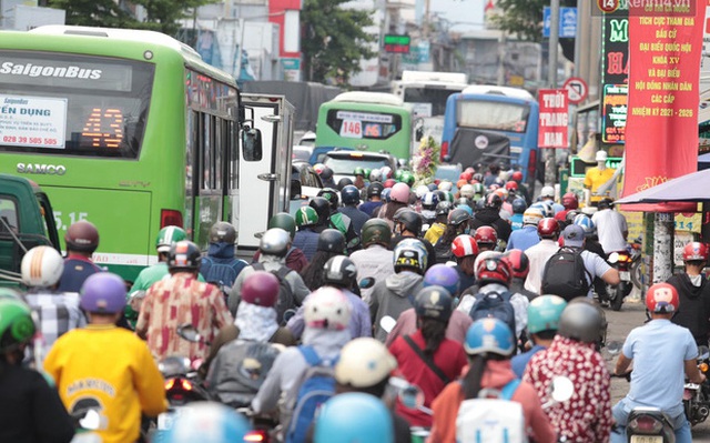 Đây là thời điểm người dân ùn ùn ra bến xe Miền Đông về quê nghỉ lễ và đi du lịch nên tuyến đường này bị kẹt xe sớm hơn thường ngày.