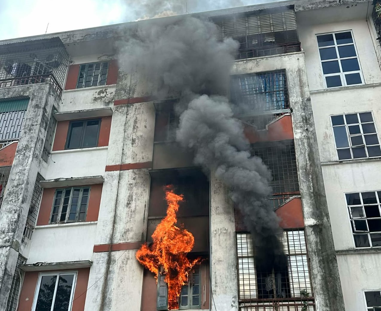 Chung cư giữa khu dân cư đông đúc bất ngờ bốc cháy