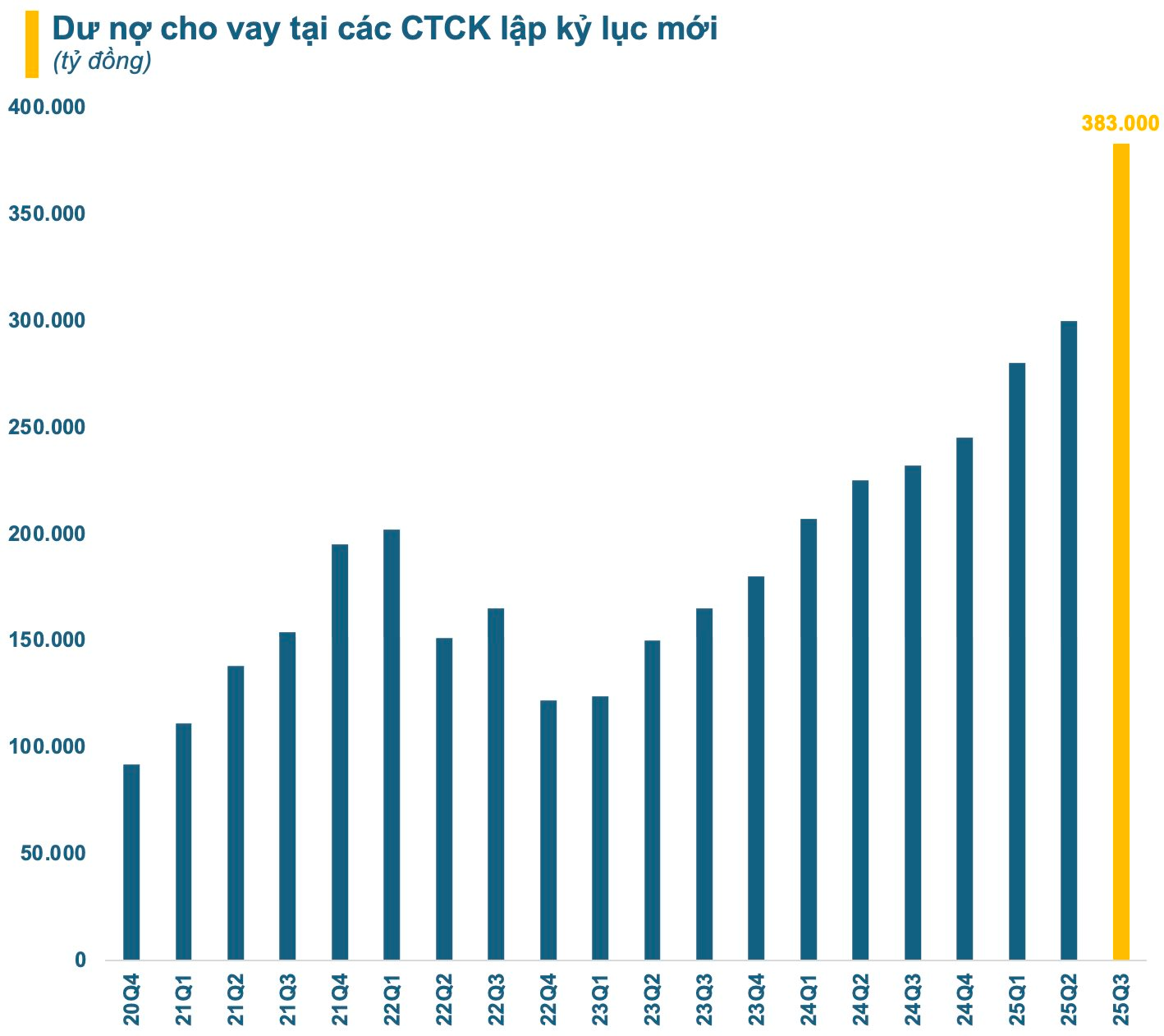 Bên cạnh đó, dư nợ margin hiện ước đạt khoảng 370.000 tỷ đồng, cao kỷ lục cũng góp phần gây áp lực lên thị trường trong các nhịp điều chỉnh. Thực tế, đòn bẩy margin là công cụ được ví như 'con dao hai lưỡi', một phần có thể giúp gia tăng lợi nhuận thu về tuy nhiên cũng khiến nhà đầu tư gặp rủi ro nhiều hơn trong những nhịp chỉnh mạnh.