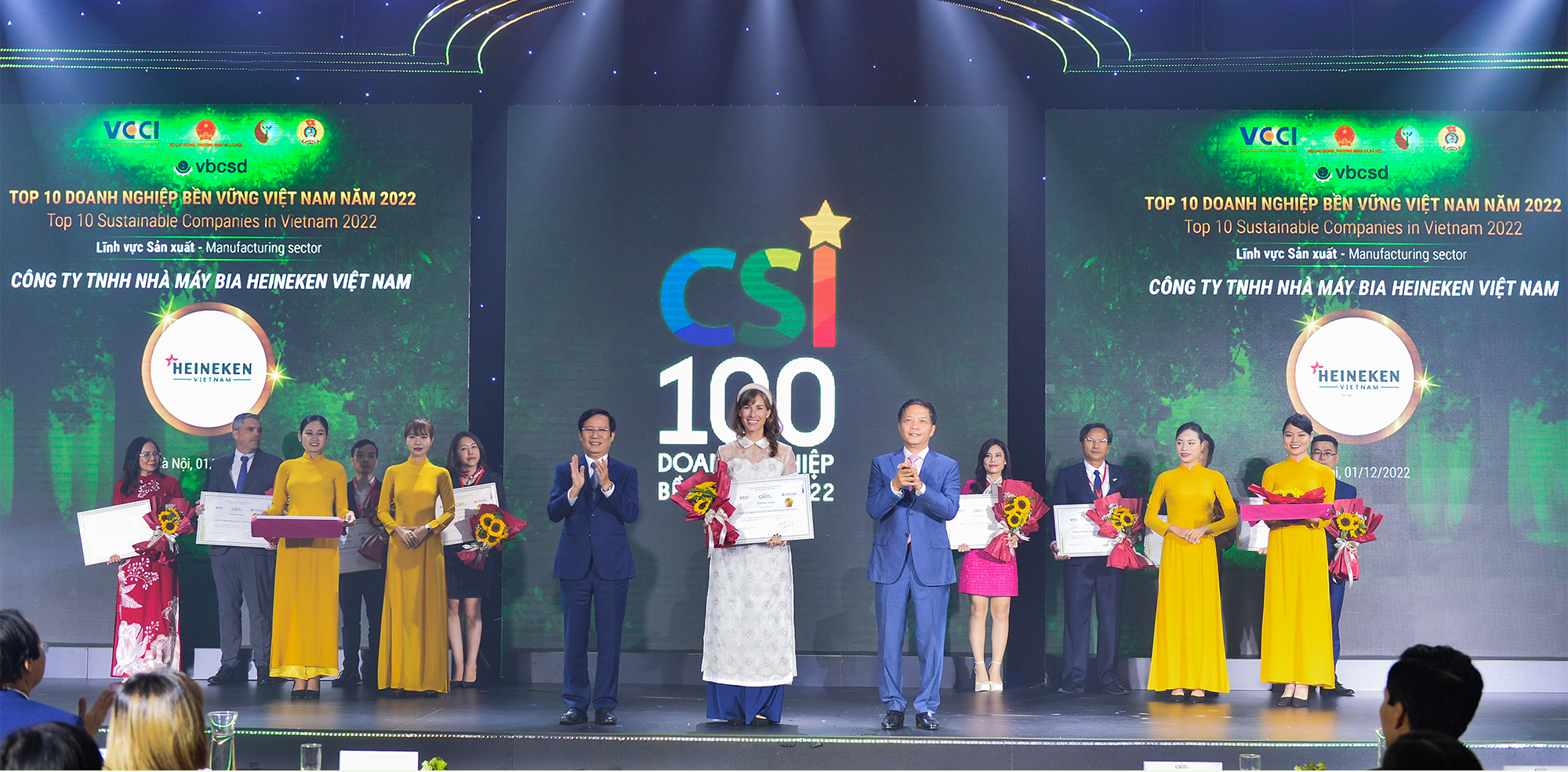 Cùng những nỗ lực không ngừng, vào cuối năm 2022, HEINEKEN Việt Nam đã tiếp tục được vinh danh trong top 3 doanh nghiệp phát triển bền vững nhất Việt Nam bởi Liên đoàn Thương mại và Công thương Việt Nam (VCCI). Phát biểu sau sự kiện, bà Lê Thị Ngọc Mỹ - Giám đốc Phát triển Bền vững HEINEKEN Việt Nam cho biết bên cạnh những thành tựu đã đạt được, doanh nghiệp hy vọng sẽ có thể tiếp tục mang đến những giá trị tốt đẹp và lan tỏa tinh thần trách nhiệm đến cộng đồng thông qua những chính sách, quy định quốc gia cởi mở, cùng nỗ lực tăng cường nhận thức về phát triển bền vững đối với cộng đồng doanh nghiệp.