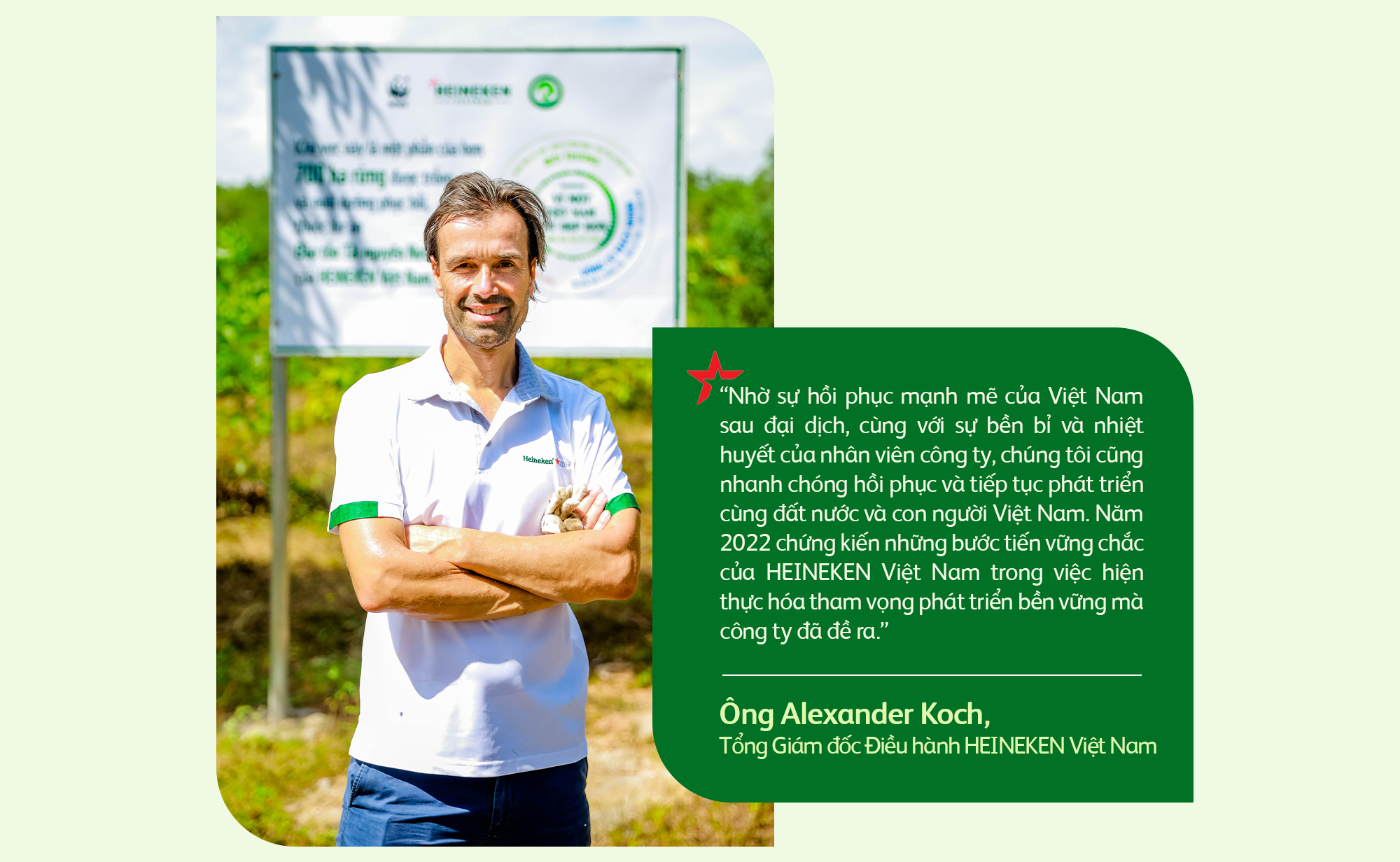 Không ngừng nỗ lực chung tay hành động, HEINEKEN Việt Nam đã gặt hái những thành tựu đáng kể trong năm 2022 khi đóng góp 1,04% vào tổng GDP của Việt Nam cùng 246,000 việc làm trên toàn bộ chuỗi giá trị. Chia sẻ về những cột mốc đáng nhớ, ông Alexander Koch, Tổng Giám đốc Điều hành HEINEKEN Việt Nam cho biết: "Nhờ sự hồi phục mạnh mẽ của Việt Nam sau đại dịch, cùng với sự bền bỉ và nhiệt huyết của nhân viên công ty, chúng tôi cũng nhanh chóng hồi phục và tiếp tục phát triển cùng đất nước và con người Việt Nam. Năm 2022 chứng kiến những bước tiến vững chắc của HEINEKEN Việt Nam trong việc hiện thực hóa tham vọng phát triển bền vững mà công ty đã đề ra."