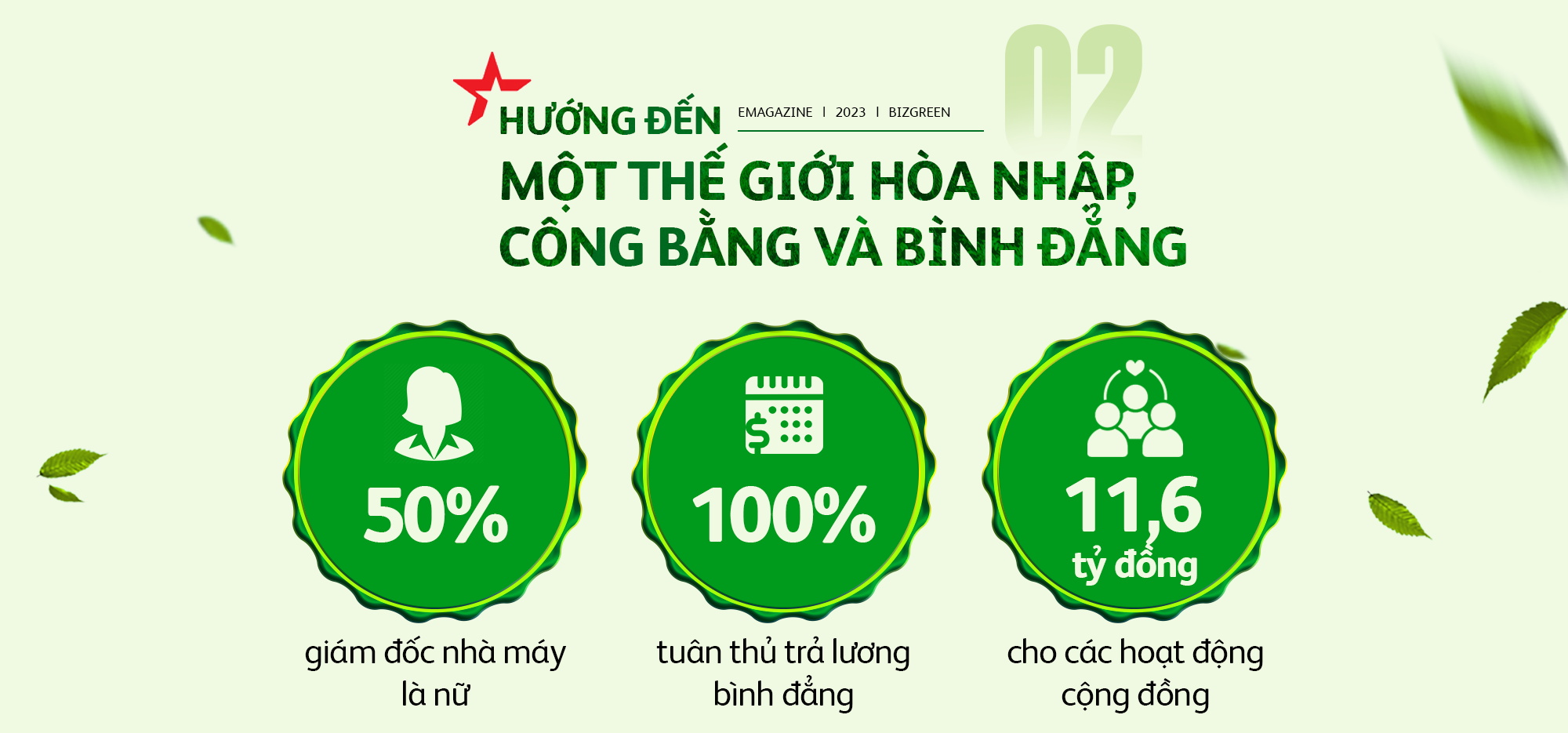 Hướng đến một thế giới hòa nhập, công bằng và bình đẳng, HEINEKEN Việt Nam luôn đề cao sự cân bằng giới tính và đa dạng văn hóa của doanh nghiệp. Hiện tại, doanh nghiệp có 3/6 nhà máy bia đang được điều hành bởi các nữ giám đốc, 27% đội ngũ quản lý cấp cao là nữ giới, 33% thành viên trong ban điều hành là người trong khu vực châu Á - Thái Bình Dương, và 78% nhân viên thuộc thế hệ Y và Z.