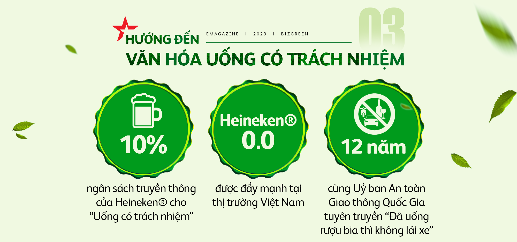 Theo đó, cùng chiến lược "Vì một Việt Nam tốt đẹp hơn", tham vọng phát triển bền vững của HEINEKEN Việt Nam tập trung vào ba khía cạnh môi trường, xã hội, và uống có trách nhiệm cùng những lộ trình cụ thể: