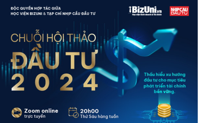 Thấu hiểu mối quan tâm này, Học viện Kinh doanh và Tài chính BizUni cùng với tạp chí Nhịp cầu Đầu tư đồng tổ chức "Chuỗi hội thảo đầu tư 2024" bao gồm 12 hội thảo được tổ chức theo hình thức trực tuyến (Zoom) vào tối thứ sáu hàng tuần.
