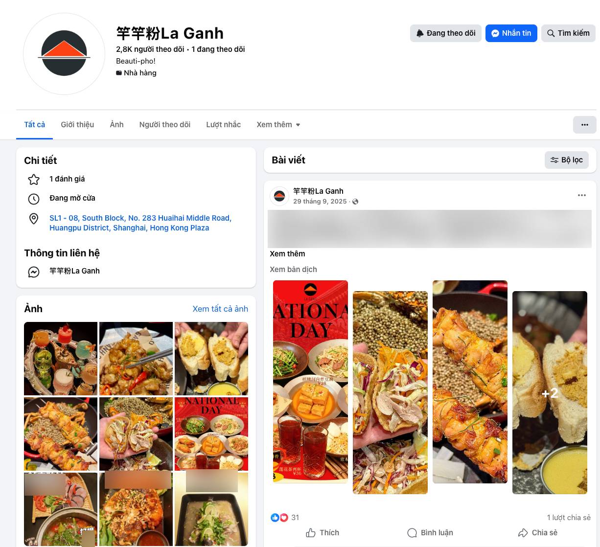 Một chi tiết đáng chú ý khác là hiện tại trên các nền tảng mạng xã hội của La Ganh, địa chỉ được "ghim" chủ yếu là Hong Kong Plaza - tức chi nhánh mới thuộc La Ganh 2.0. Các bài đăng gần đây cũng chủ yếu nhắc tới địa điểm này. Trong khi đó, 2 địa chỉ trước đó gồm chi nhánh tại Jingan và cửa hàng tại Taikoo Li Qiantan không còn xuất hiện trong các cập nhật mới.