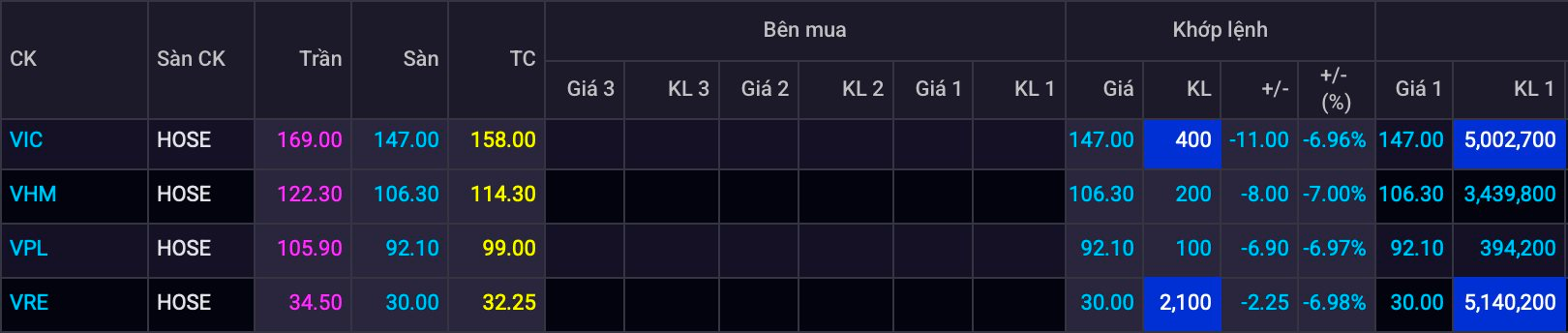 Sau phiên ATC ngày 25/12 đồng loạt giảm sàn, các cổ phiếu nhóm Vingroup (VIC, VHM, VPL, VRE) tiếp tục rơi sâu, thậm chí “trắng bên mua”. Vốn hóa thị trường của riêng Vingroup đã “bốc hơi” gần 177.000 tỷ sau 2 phiên. Nếu tính toàn bộ hệ sinh thái trong tay tỷ phú Phạm Nhật Vượng trên HoSE, con số vốn hóa bị thổi bay sau 2 phiên lên đến gần 275.000 tỷ đồng.