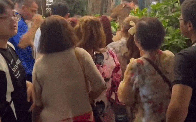 Không khí tại quán trở nên nhộn nhịp như một sự kiện giải trí thu nhỏ. Nhiều người không ngại chen chân giữa dòng người đông đúc chỉ để lưu lại khoảnh khắc bên thần tượng. Đáng chú ý, chính Đàm Vĩnh Hưng cũng xuất hiện trực tiếp, thân thiện tạo dáng, giao lưu và đáp lại tình cảm của người hâm mộ.