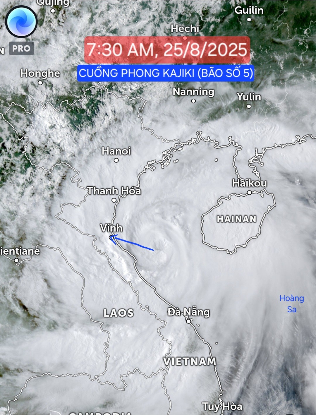 Tiến sĩ Nguyễn Ngọc Huy dẫn thông tin từ Trung tâm Dự báo Khí tượng Thủy văn Quốc gia, hồi 07h ngày 25/8, tâm bão ở 18,4°N - 107,2°E, cách Hà Tĩnh 145km về phía Đông. Sức gió mạnh nhất cấp 14 (150-166km/h), giật cấp 17. Bão di chuyển hướng Tây Tây Bắc, tốc độ 20km/h.