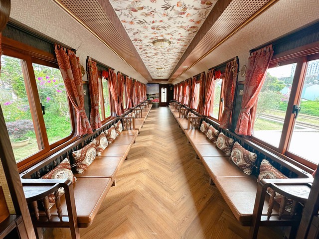 Khi bước vào bên trong, du khách sẽ thực sự cảm nhận được cảm hứng mang đậm dấu ấn Tàu mang phong cách kiến trúc Indochine với gỗ nâu trầm, kính màu nghệ thuật, đèn trần hoa văn, rèm nhung đỏ và ghế bọc da, tái hiện vẻ đẹp cổ điển và sang trọng. Đặc biệt, các toa đều có cửa kính lớn, để dù sáng sớm hay chiều muộn, du khách vẫn có thể ngắm nhìn vùng ven Đà Lạt yên bình trôi qua.