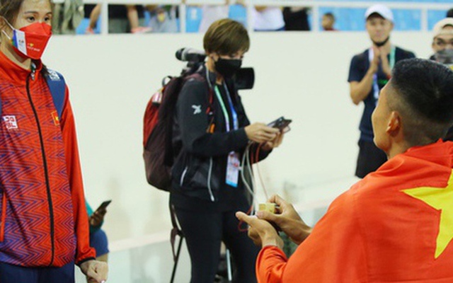 Chuyện tình đẹp tại SEA Games 31: Vừa nhận huy chương vàng, VĐV quỳ gối cầu hôn bạn gái tuyển thủ cầu mây