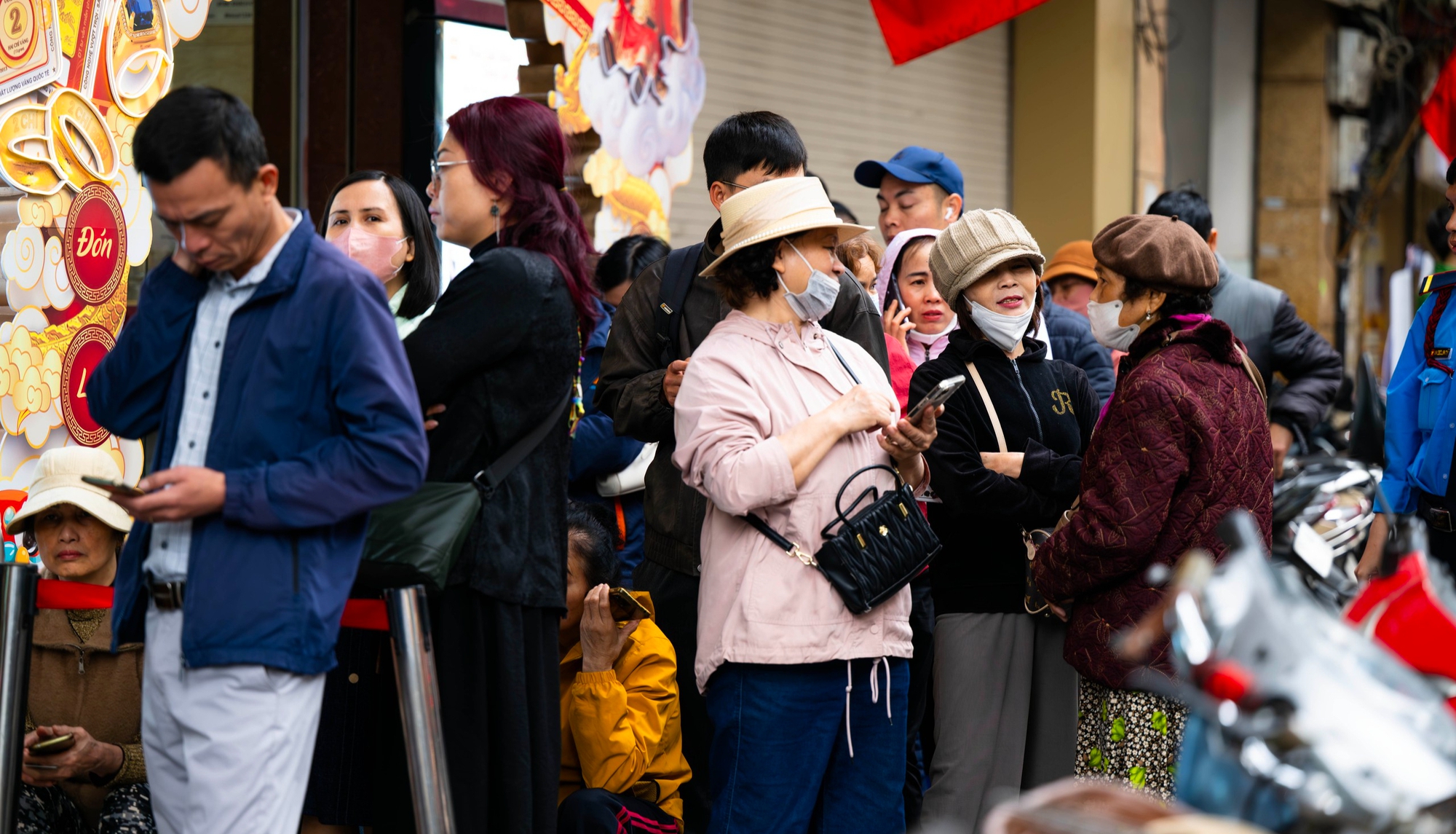 Xếp hàng chờ "lấy số" mua vàng - Cảnh tượng thường thấy tại một vài tiệm vàng trên "phố vàng" Trần Nhân Tông