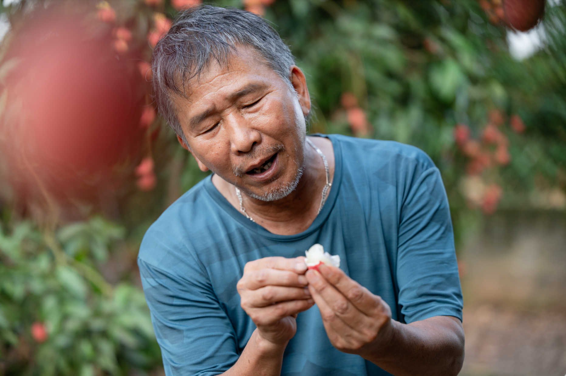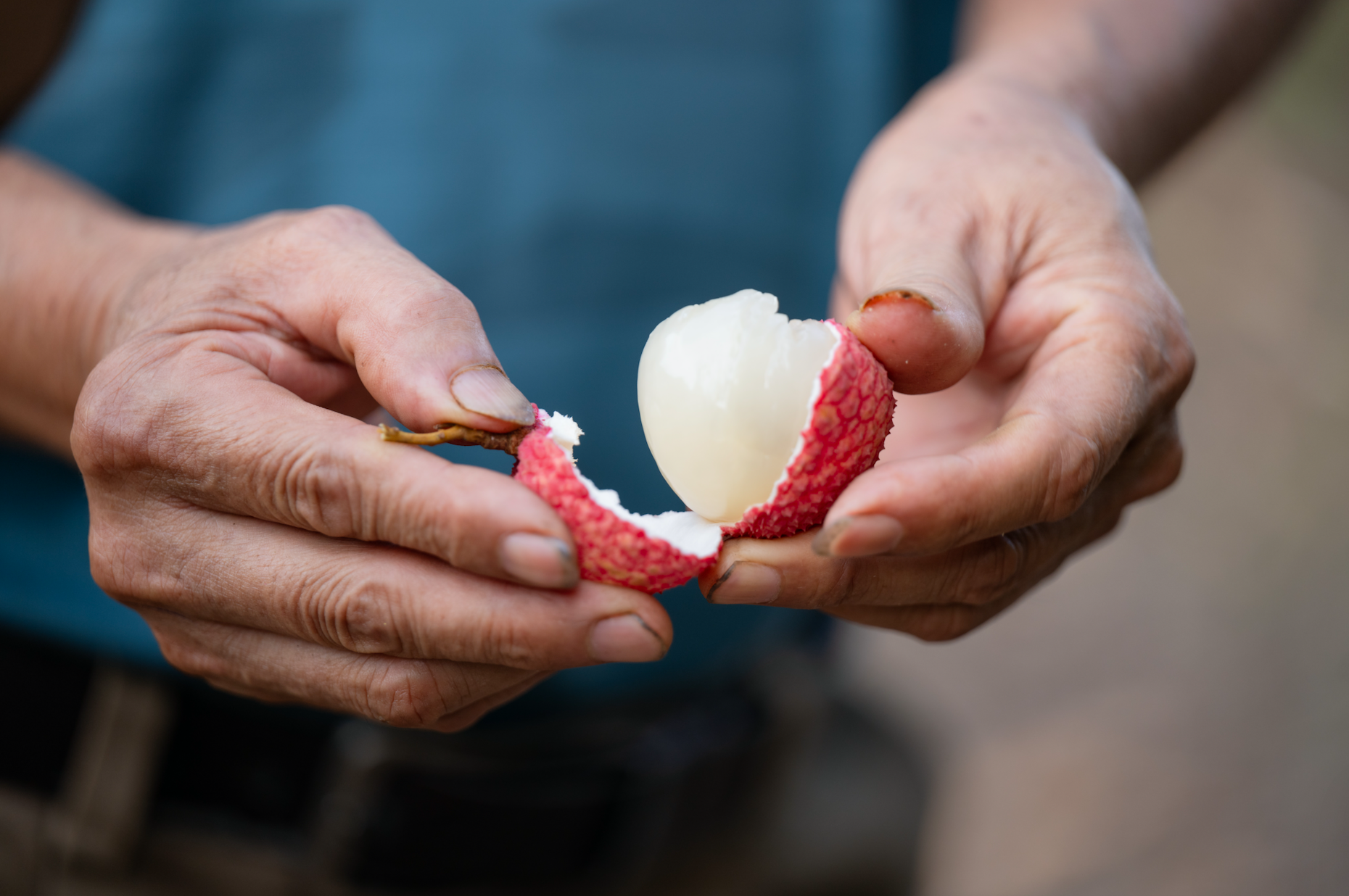 Ông Vì cũng tiết lộ cách ăn vải "đúng điệu" là dùng tay tách đôi quả, lột nhẹ là lớp vỏ sẽ dễ dàng được tách ra, sau đó thưởng thức từng miếng thật to, thậm chí ăn trọn cả quả để cảm nhận trọn vị ngọt đậm.