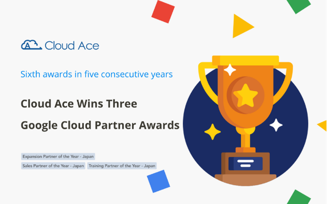 Google Cloud Partner of the Year là chương trình nhằm công nhận các đối tác của Google Cloud với những cống hiến và thành tích xuất sắc. Đây là lần thứ 6 trong 5 năm liên tiếp Cloud Ace nhận danh hiệu này, cùng với các giải thưởng Expansion Partner of the Year - Japan, Sales Partner of the Year - Japan, Training Partner of the Year - Japan và Sales Partner of the Year - Southeast Asia. Các giải thưởng này ghi nhận công ty đã đóng góp tích cực vào hệ sinh thái đối tác của Google Cloud, góp phần thành công trong các hoạt động kinh doanh của quý khách hàng thông qua việc cung cấp các giải pháp tốt hàng đầu về đổi mới và cộng tác cùng Google Cloud ở Nhật và Đông Nam Á trong năm 2022.