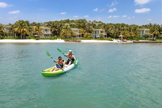 Trong khi đó, cả gia đình có thể cùng nhau chèo kayak trên bãi Kem, một trong những bãi biển đẹp nhất Phú Quốc, với làn nước trong veo và bờ cát mịn như kem.