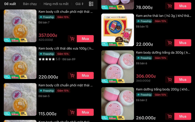 Các sản phẩm được đăng bán trên các sàn thương mại điện tử. Ảnh: Công an xã Thạnh Phước