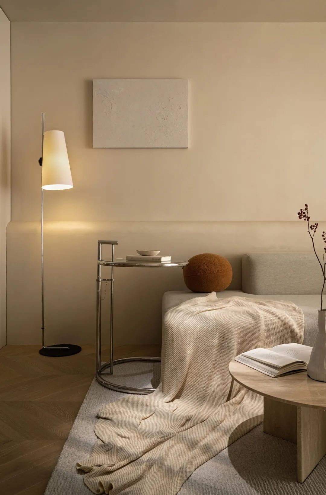 Cô gái 27 tuổi đã mua thêm một chiếc đèn gắn vào gần sofa để dễ dàng đọc sách hoặc xem TV vào mỗi buổi tối tại phòng khách.