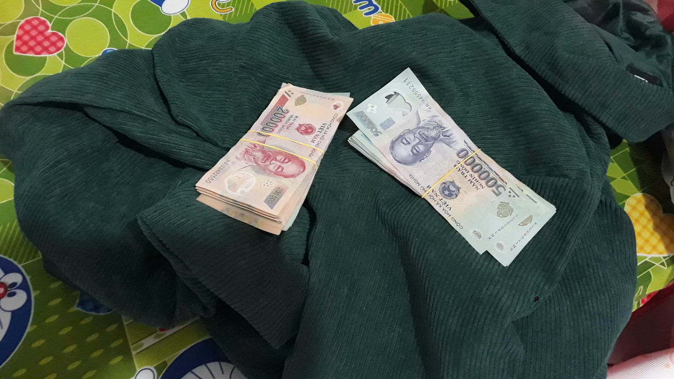 Tiến hành kiểm tra nhà đối tượng, công an thu giữ số tiền mà Nhi đã bán sợi dây chuyền cướp giật của chị L.