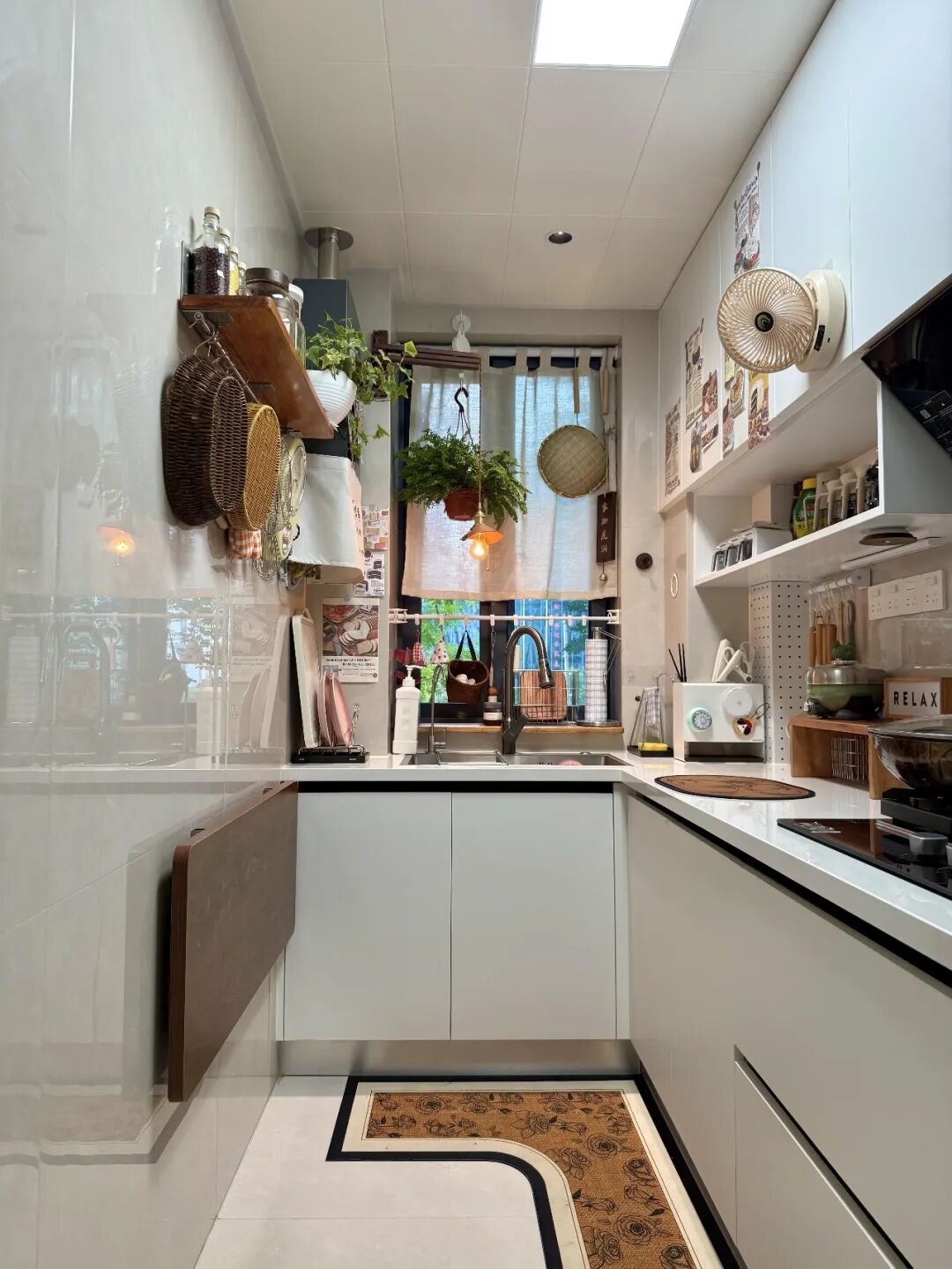 2. Bếp dài và hẹp vẫn có thể rộng rãi nhờ kệ gấp
