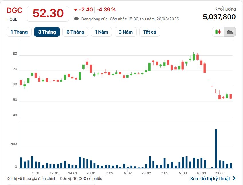 Cổ phiếu DGC bị nhà đầu tư "xả" mạnh trong phiên 26/3.