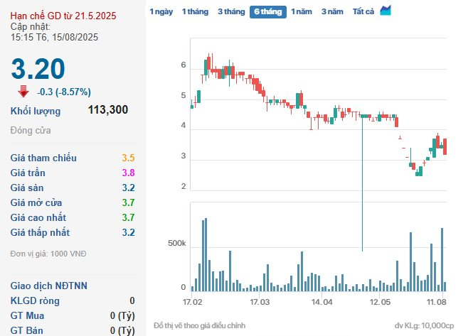 Hiện, cổ phiếu SDA đang thuộc diện hạn chế giao dịch từ ngày 21/05/2025 – chỉ giao dịch vào thứ 6 hàng tuần. Vốn hóa thị trường của doanh nghiệp này ở mức 83,8 tỷ đồng.