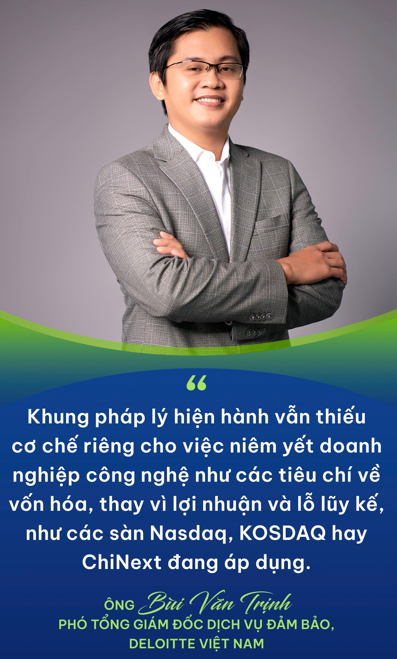 Bên cạnh đó, khung pháp lý hiện hành vẫn thiếu cơ chế riêng cho việc niêm yết doanh nghiệp công nghệ như các tiêu chí về vốn hóa, thay vì lợi nhuận và lỗ lũy kế, như các sàn Nasdaq, KOSDAQ hay ChiNext đang áp dụng.