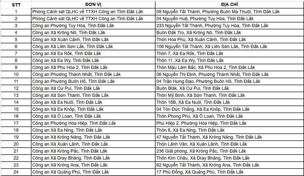 Người dân cư trú tại các xã, phường liên hệ với các điểm thu nhận Căn cước, định danh điện tử xuyên Tết tại các địa chỉ sau: