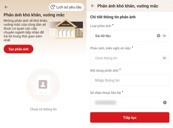 - Bước 3: Nhấn “Tạo phản ánh”, ghi rõ nội dung sai sót và yêu cầu điều chỉnh.