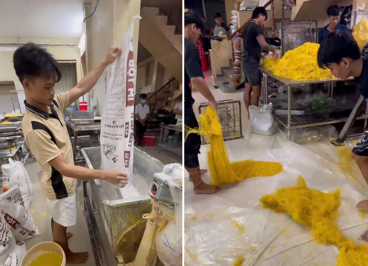 Trước đó, giữa tháng 12/2025, lực lượng của Phòng Cảnh sát kinh tế bất ngờ ập vào kiểm tra hộ kinh doanh Châu Phát. Tại đây, cơ quan công an bắt quả tang nhiều người lao động đang pha trộn hóa chất để sản xuất mì sợi trong điều kiện làm việc không đảm bảo vệ sinh an toàn.