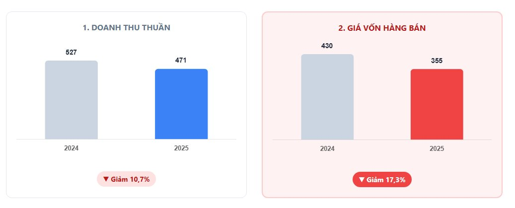Nguyên nhân chính đến từ việc giá vốn hàng bán giảm mạnh hơn tốc độ giảm của doanh thu. Trong khi doanh thu giảm 10,7%, giá vốn hàng bán giảm tới 17,3% (tương đương giảm 74,3 tỷ đồng ).