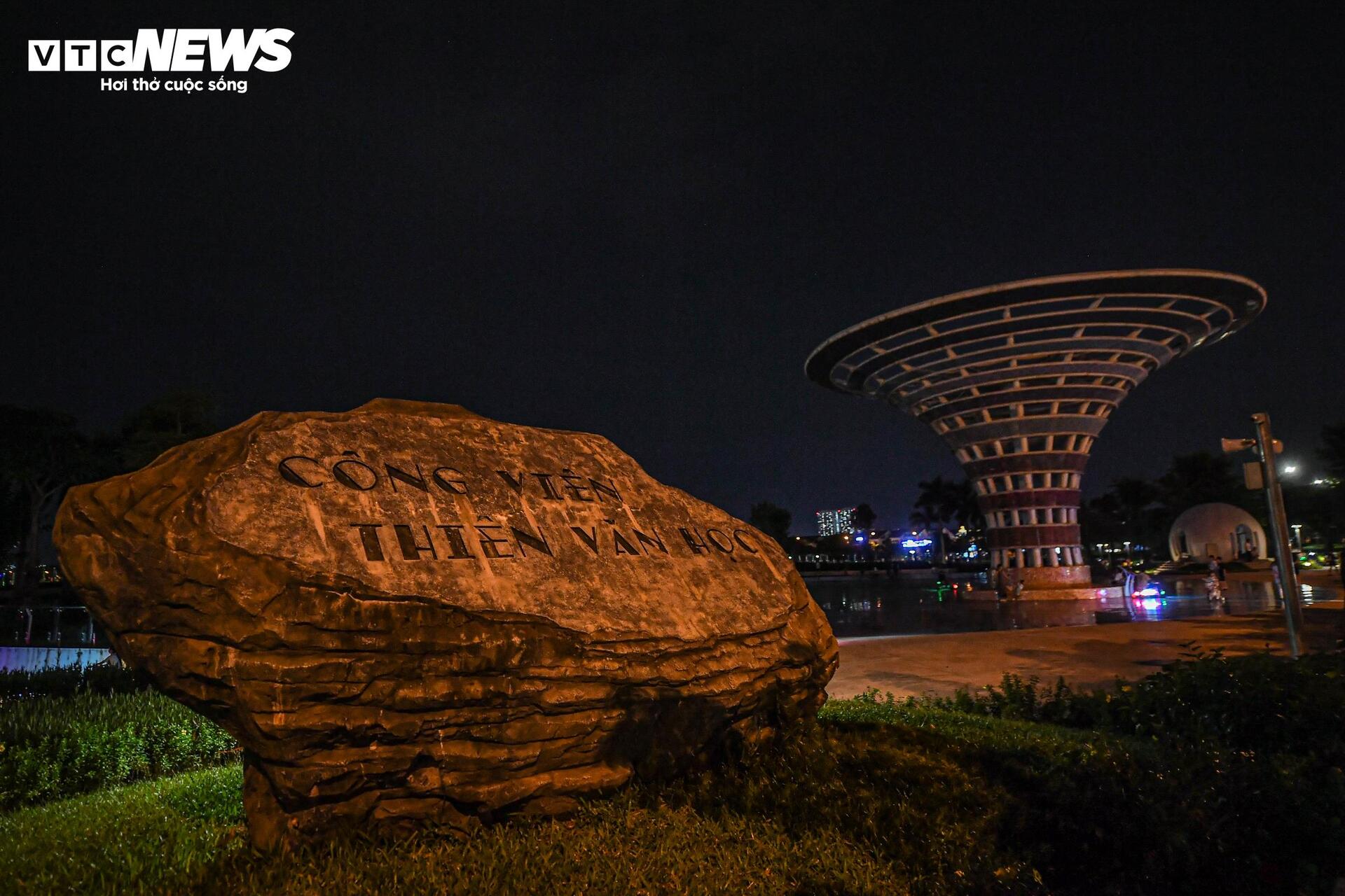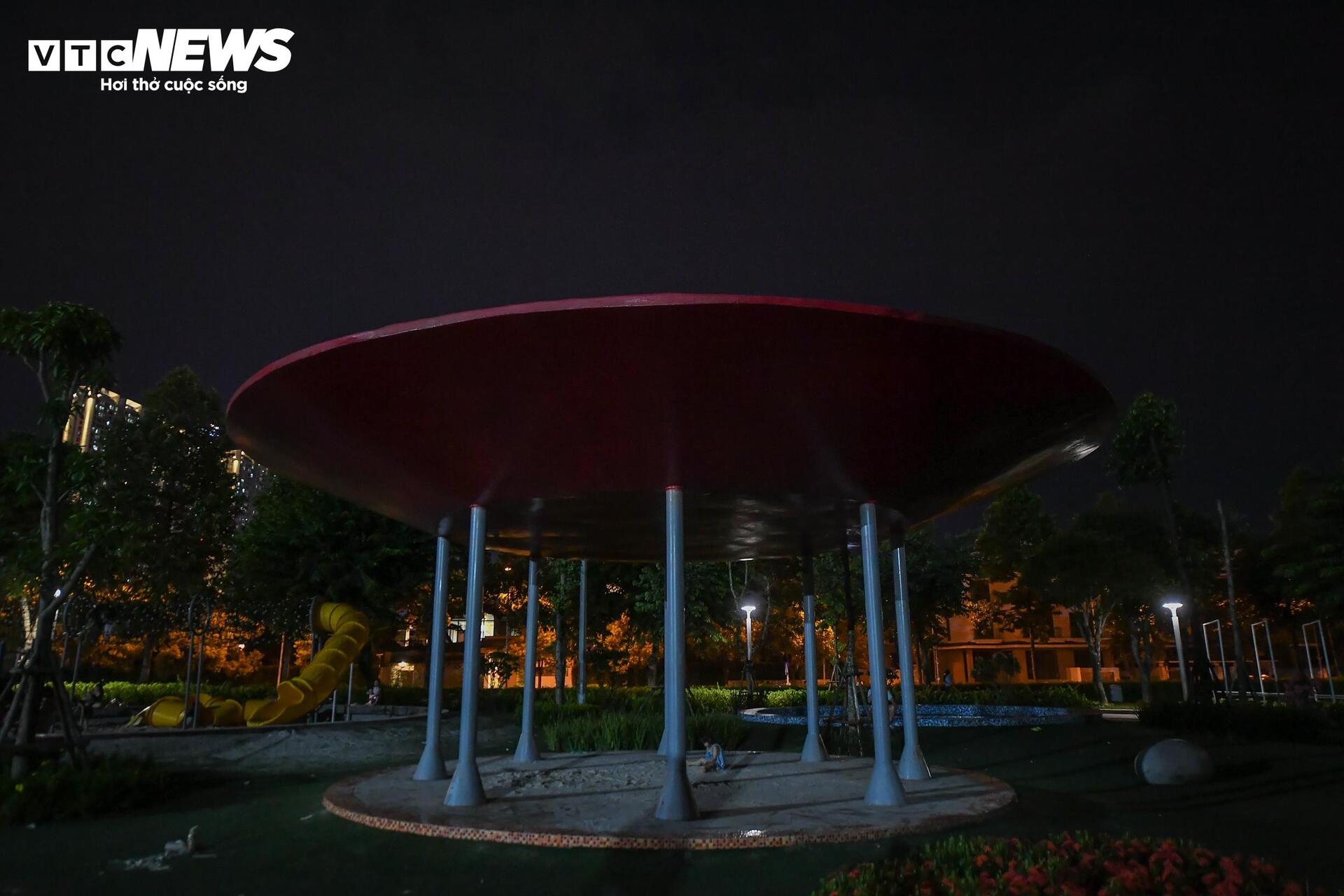 Toàn bộ hệ thống đèn chiếu sáng dưới công trình trung tâm của công viên, bao gồm cả khu vực biểu tượng mô phỏng đĩa bay, đều trong tình trạng tắt hoàn toàn. Hiện nay, sân chơi “lưới không gian” là điểm duy nhất còn được thắp sáng, trở thành khu vực hiếm hoi có thể quan sát rõ vào ban đêm giữa một công viên vốn được kỳ vọng là điểm đến văn minh, hiện đại.