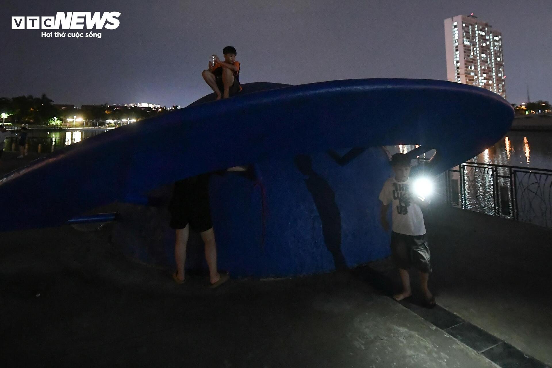 Hàng trăm trụ đèn không hoạt động, các lối đi quanh hồ, khu vui chơi trẻ em và cả những công trình biểu tượng đặc sắc đều không được chiếu sáng.