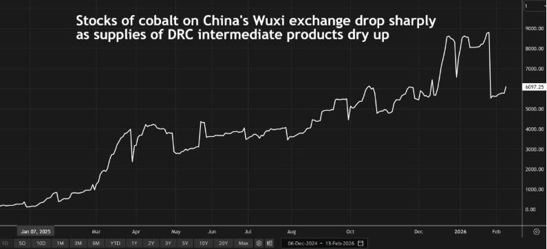 Hơn 3.250 tấn cobalt kim loại, tương đương 37% lượng tồn kho trên sàn, đã được rút khỏi các kho đăng ký tại Vô Tích vào cuối tháng 1.