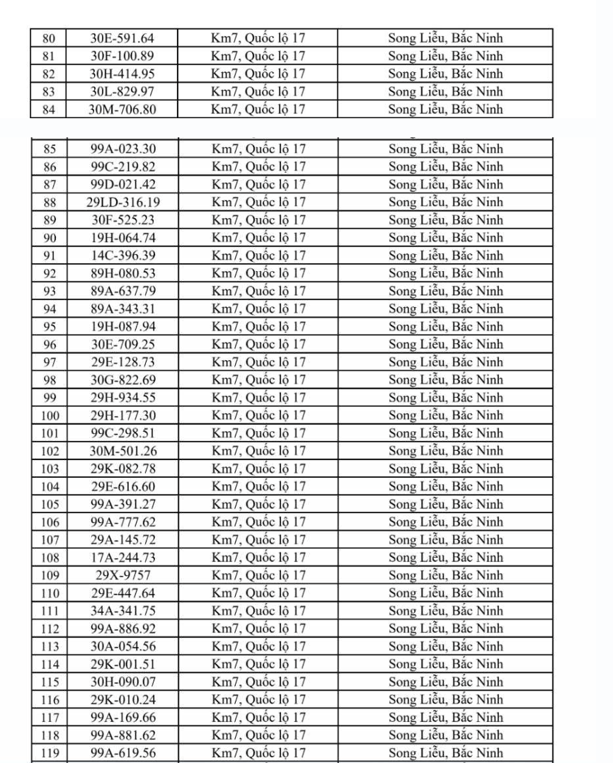 Danh sách một số phương tiện vi phạm tốc độ từ ngày 23 - 29/3 tại Bắc Ninh như sau: