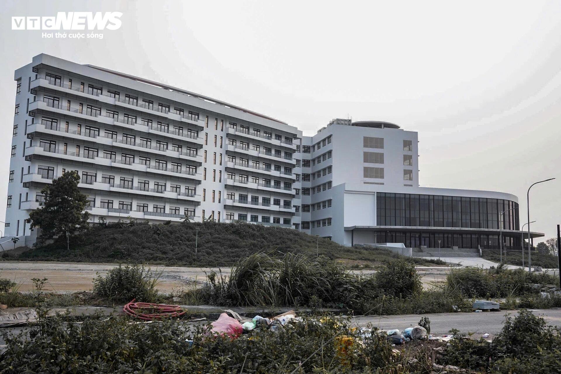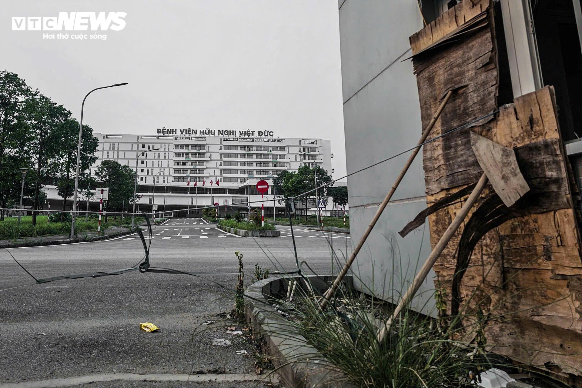 Ghi nhận thực tế tại khuôn viên hai bệnh viện cho thấy, một số khu vực vẫn còn xuất hiện máy móc, thiết bị phục vụ thi công, vật liệu xây dựng chưa được thu dọn hoàn toàn. Tại một số khu vực xung quanh khuôn viên viện, cỏ dại mọc và rác thải xuất hiện.