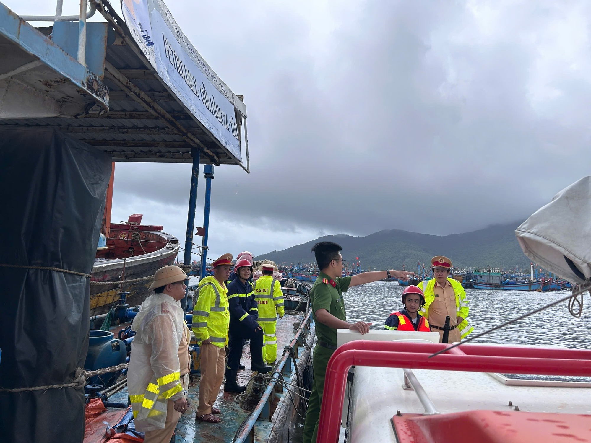 Lực lượng CSGT nỗ lực cùng người dân ứng phó với Bão số 10- Ảnh: Cục CSGT
