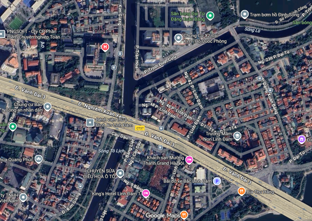 Vị trí sông Lừ hợp lưu với sông Tô Lịch. Ảnh: Google Maps.