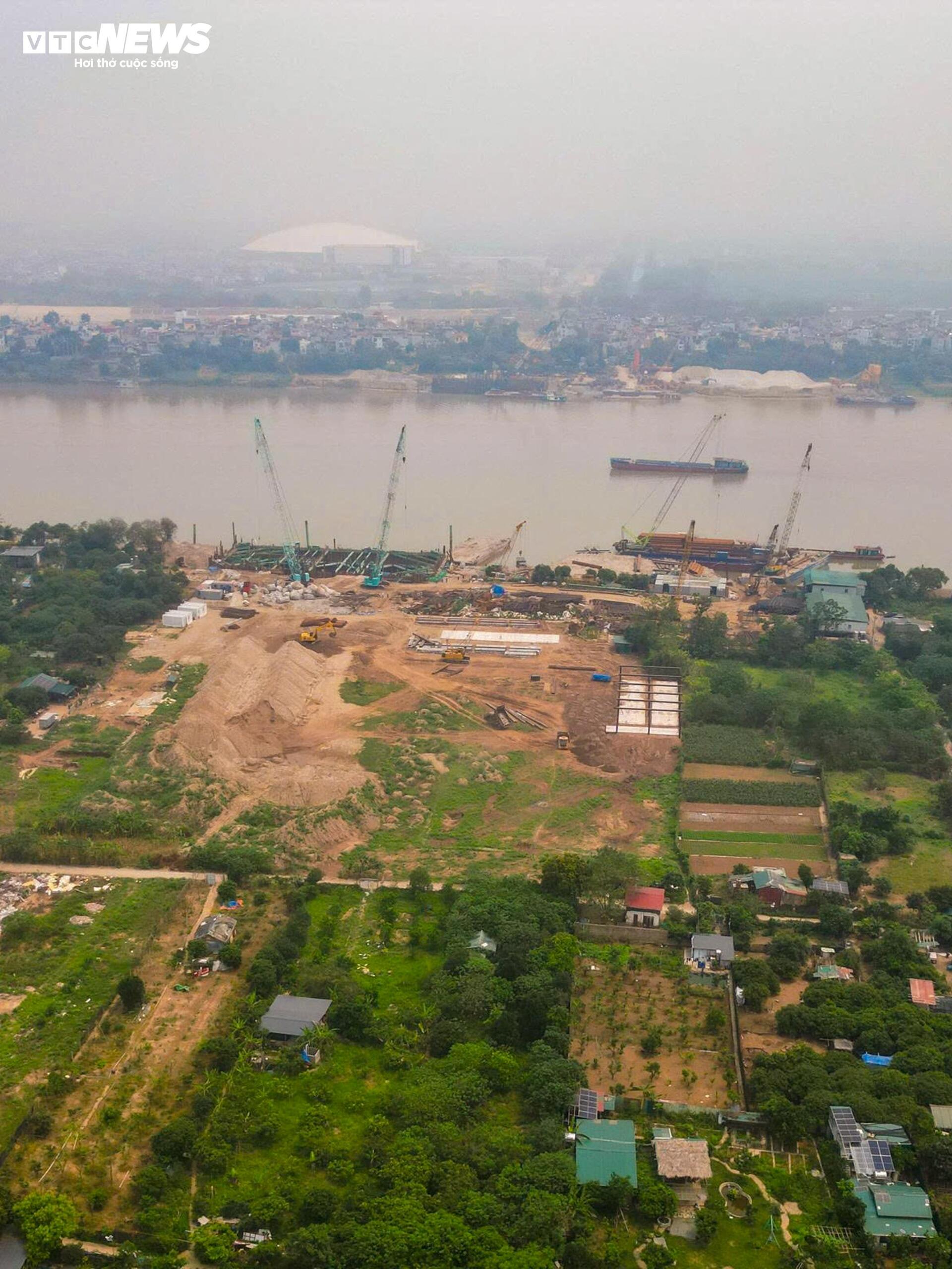 Đại công trường cầu Tứ Liên bắc qua sông Hồng sau gần 1 năm thi công
