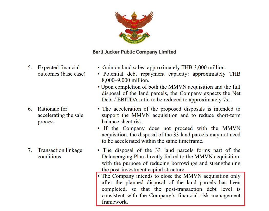 Đáng chú ý, BJC cho biết tiến độ hoàn tất thương vụ mua MM Mega Market Việt Nam có mối liên hệ trực tiếp với kế hoạch bán bất động sản. Theo định hướng quản trị rủi ro tài chính, BJC chỉ tiến hành thực hiện giao dịch mua lại MM Mega Market Việt Nam khi việc bán các khu đất này được thực hiện theo đúng kế hoạch, nhằm đảm bảo sự ổn định của bảng cân đối kế toán trong ngắn hạn.