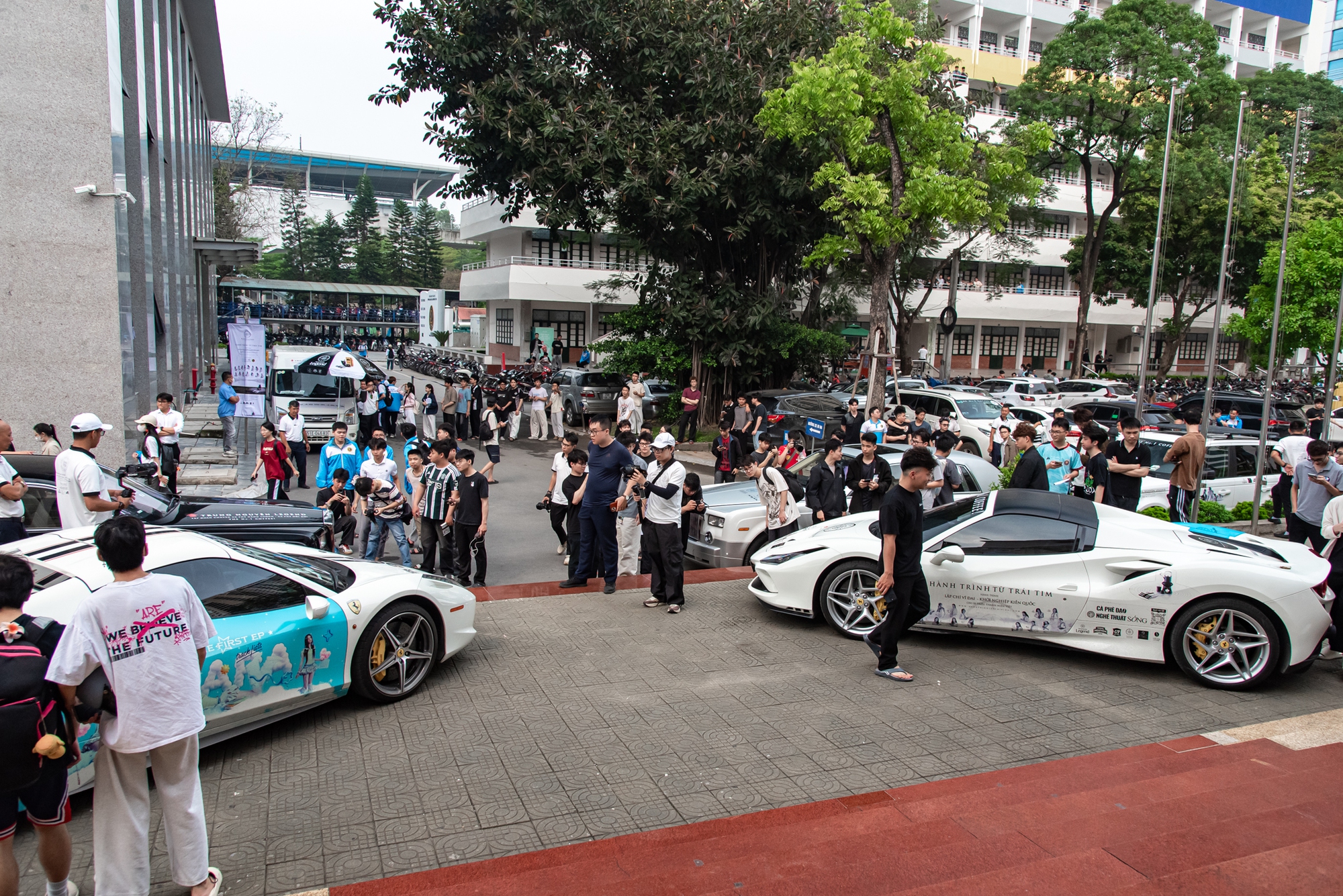 Thu hút sự quan tâm lớn nhất từ sinh viên Thủ đô là đội hình xe siêu sang và siêu xe với sự đa dạng về chủng loại, trong đó nổi bật là bộ đôi Rolls-Royce Phantom cùng cặp Ferrari F8 Spider và 458 Spider. Trước khi có mặt tại Hà Nội, những chiếc xe này từng xuất hiện tại TP.HCM và Buôn Ma Thuột, sau đó được vận chuyển ra phía Bắc để phục vụ công tác đưa đón các khách mời tham dự chương trình.