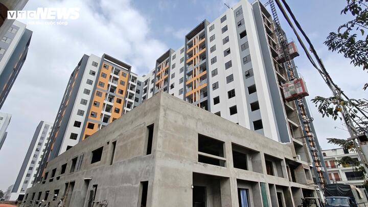 Nhà ở xã hội Tùng Bách vẫn đang trong giai đoạn hoàn thiện. (Ảnh chụp ngày 30/1/2026).