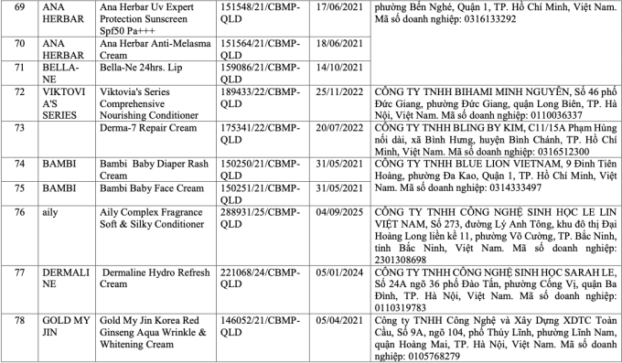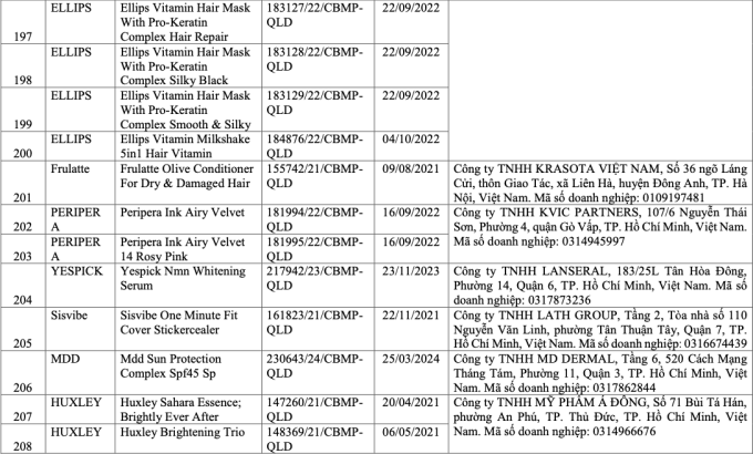 Đây là danh sách các sản phẩm mỹ phẩm chứa chất cấm Cyclotetrasiloxane và Octamethylcyclotetrasiloxane được Bộ Y tế quyết định thu hồi.