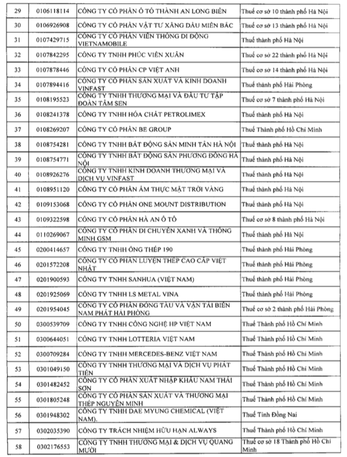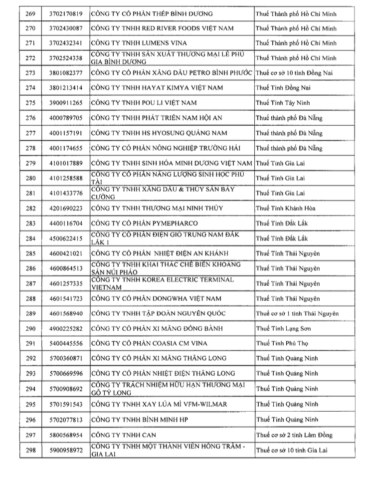 Trong đó, đáng chú ý là danh sách chi tiết 302 doanh nghiệp đính kèm phụ lục ở khắp các địa bàn trong cả nước, tập trung chủ yếu tại TP. Hà Nội, Bắc Ninh, Hưng Yên, Ninh Bình, Phú Thọ, Quảng Ninh, Thái Nguyên, Đồng Nai, TP. HCM…