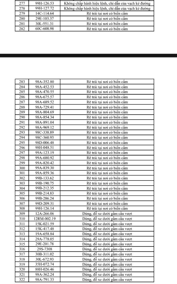 Mới đây, lực lượng chức năng đã công bố danh sách 322 phương tiện vi phạm, yêu cầu các chủ xe sớm chấp hành theo quy định.