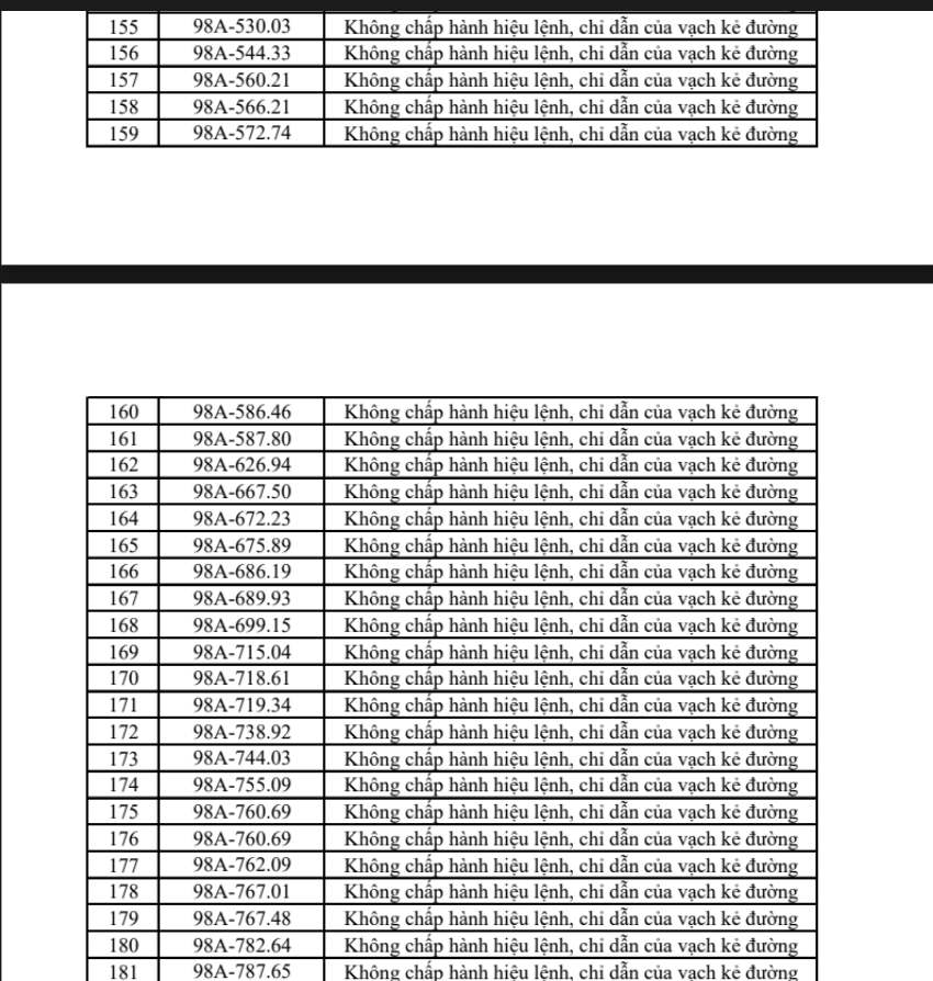 Đồng thời, cơ quan chức năng đề nghị các chủ phương tiện nằm trong danh sách nhanh chóng liên hệ với đơn vị chức năng để giải quyết vi phạm theo quy định tại Nghị định 168. Việc chủ động xử lý sẽ giúp tránh phát sinh các vấn đề liên quan đến đăng kiểm, xử phạt bổ sung hoặc các thủ tục hành chính khác.