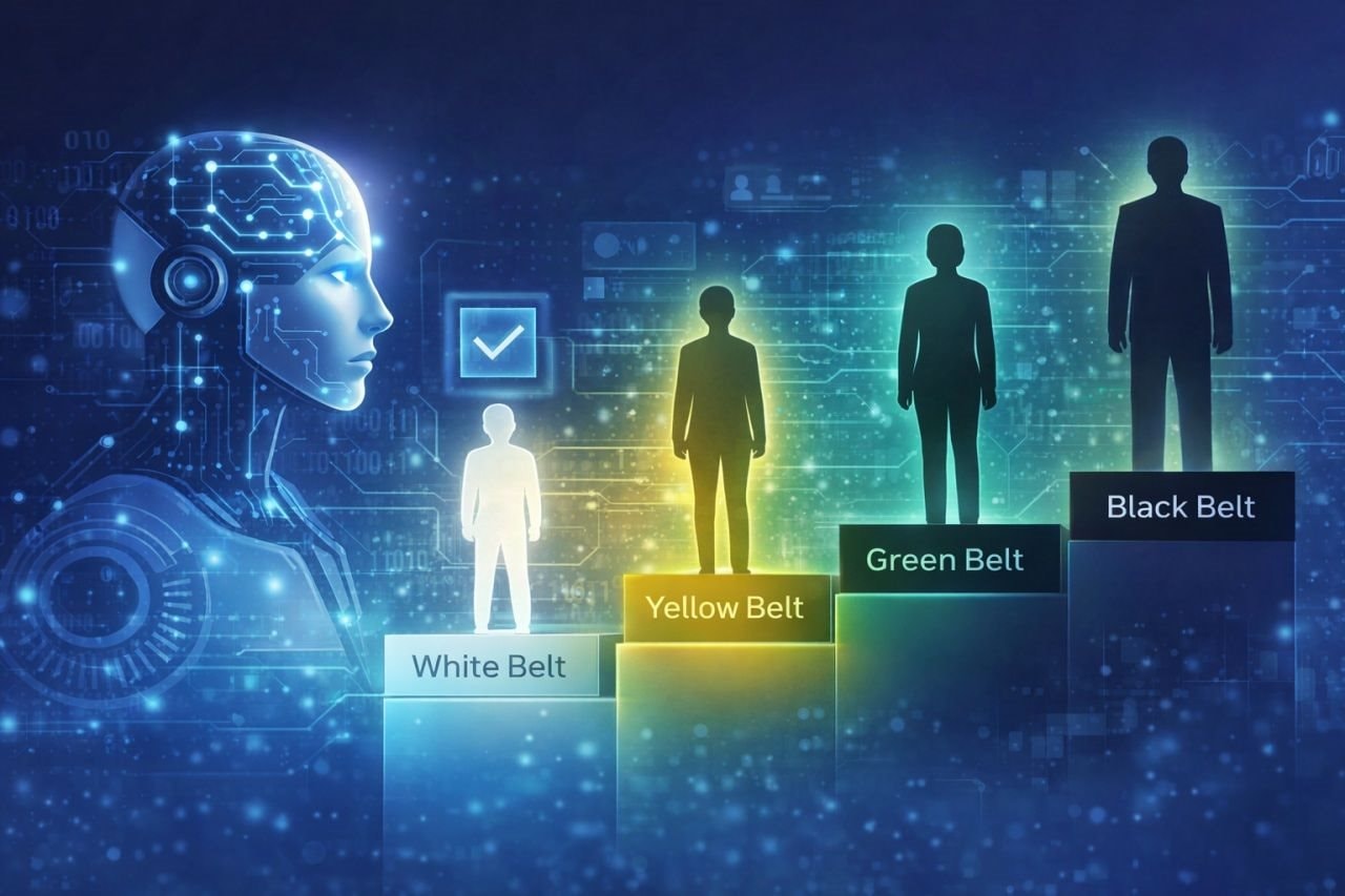 Hệ thống chứng nhận được thiết kế liền mạch với 4 cấp độ từ cơ bản đến chuyên sâu. Bắt đầu với WhiteBelt (Đai trắng) dành cho những nhân sự ở mức cơ bản, có khả năng ứng dụng AI tuân theo các quy trình và quy tắc định sẵn.