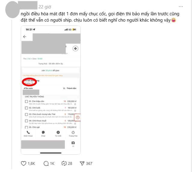 Đặt 30 cốc chè 1 đơn, bắt ghi tên từng người lên cốc: Drama giới shipper khiến dân mạng bật chế độ "mỏ hỗn