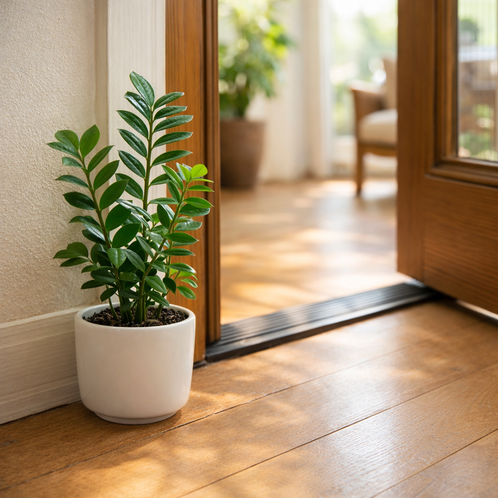 Không phải cây nào cũng đặt được ở cửa. Đầu năm, phong thủy ưu tiên cây lá tròn, xanh bóng, sống khỏe.