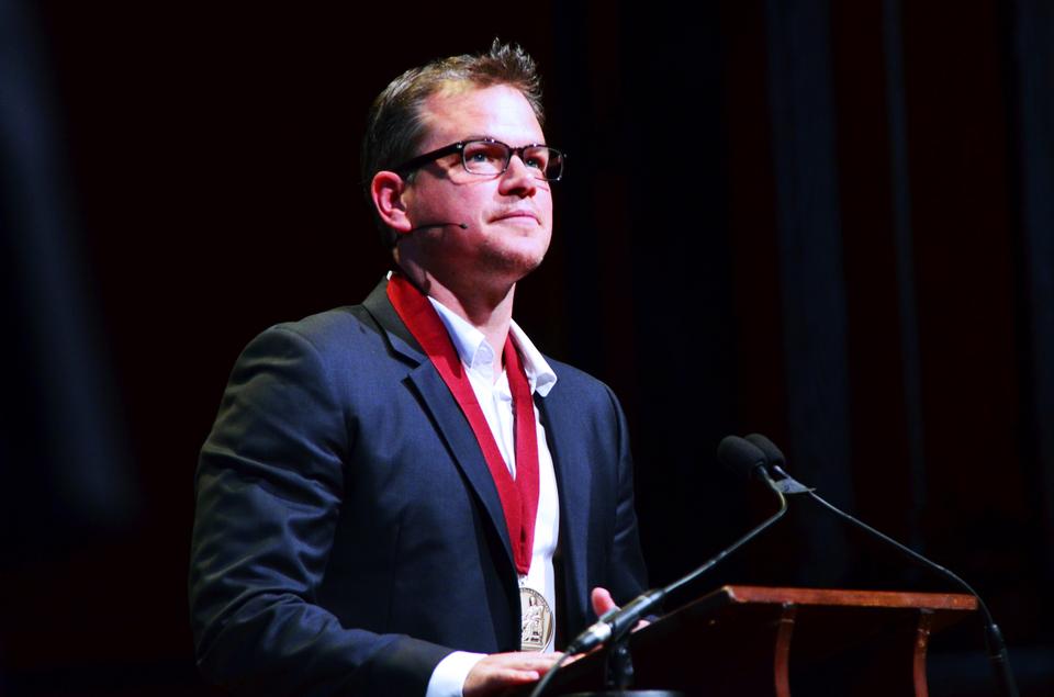 Matt Damon phát biểu khi nhận Huân chương nghệ thuật Havard năm 2013