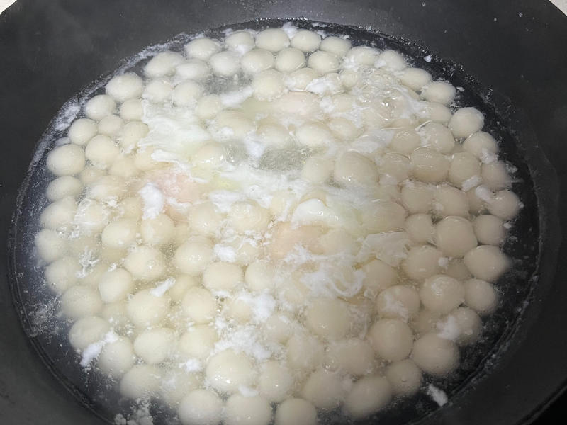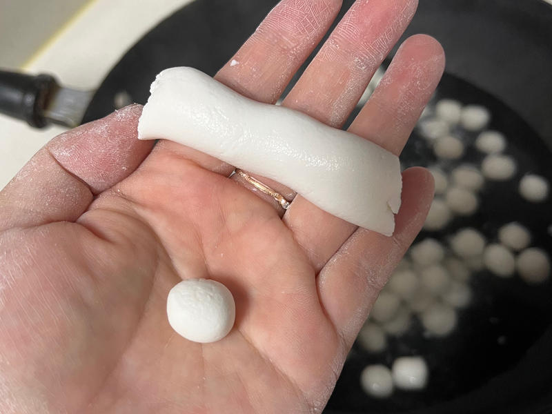 Bước 1: Đầu tiên, thêm nước ấm vào bột gạo nếp và nhào thành bột mịn. Sau đó vo thành những viên tròn có kích thước khoảng 2cm. Sau đó đun sôi một nồi nước rồi thả các viên bánh trôi vào, đun cho đến khi chúng nổi lên mặt nước thì vớt ra, thả vào chậu nước lạnh.