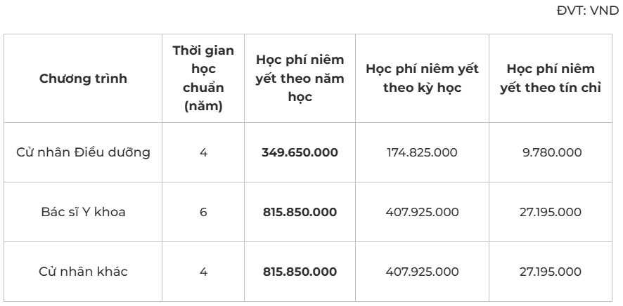 Hiện học phí dành cho chương trình cử nhân năm học 2025-2026 đang được niêm yết như sau: